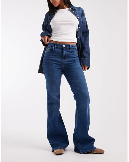 Jeans par Only Coupe slim évasée Passants pour ceinture Poches fonctionnelles Taille haute. Coloris : bleu
