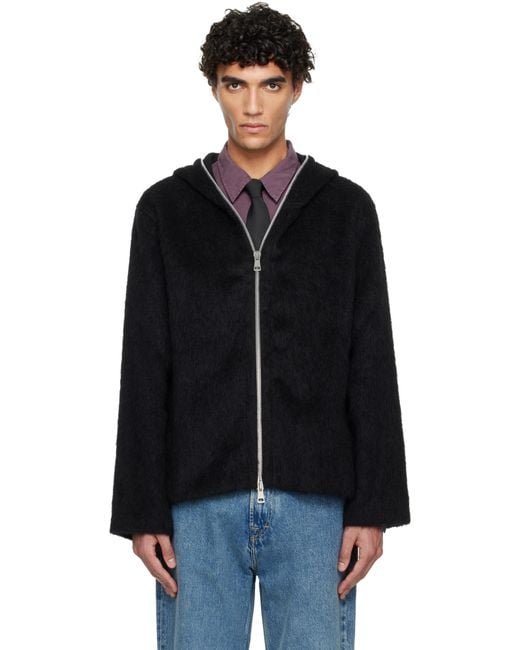 - Pull À Capuche Noir À Glissière Prolongée