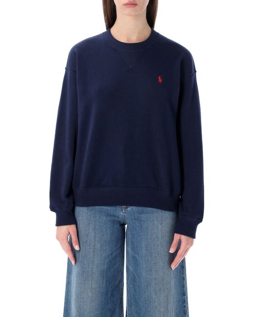 Le sweat-shirt à col rond en polaire Polo Ralph Lauren est confectionné en coton doux avec une silhouette décontractée. Doté d'une encolure en tricot côtelé avec un empiècement en V et du poney emblématique brodé sur la poitrine, il incarne un confort intemporel et un style décontracté sans effort. Col rond côtelé avec empiècement en V. Manches longues avec épaules tombantes. Poignets et ourlet côtelés. Coupe décontractée. Poney brodé sur la poitrine gauche. Le modèle est 1,72 m et porte une taille S. Coloris : bleu