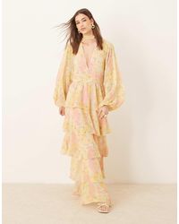 Pretty Lavish Robe longue plissée à corsage torsadé - abstrait fleuri femme de coloris rose