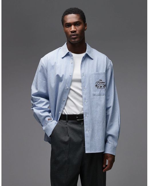 Chemise manches longues à logo sur la poche - rayures es homme de coloris blanc