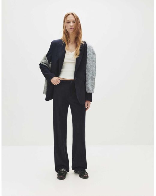 Pantalons et leggings par Pull&Bear Motif à fines rayures Taille haute Passants pour ceinture Coupe droite. Coloris : bleu