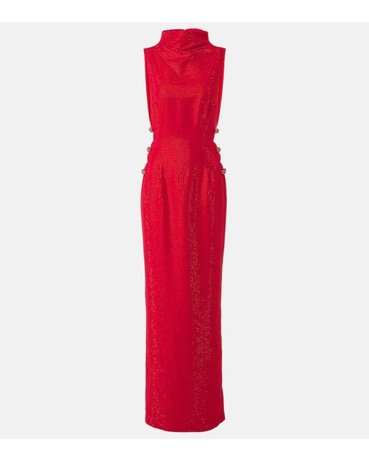 Robe Longue En Crepe A Ornements femme de coloris rouge