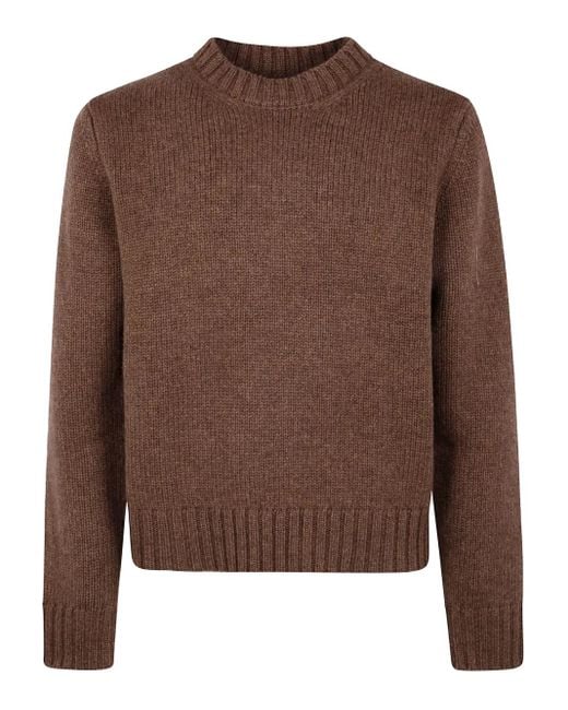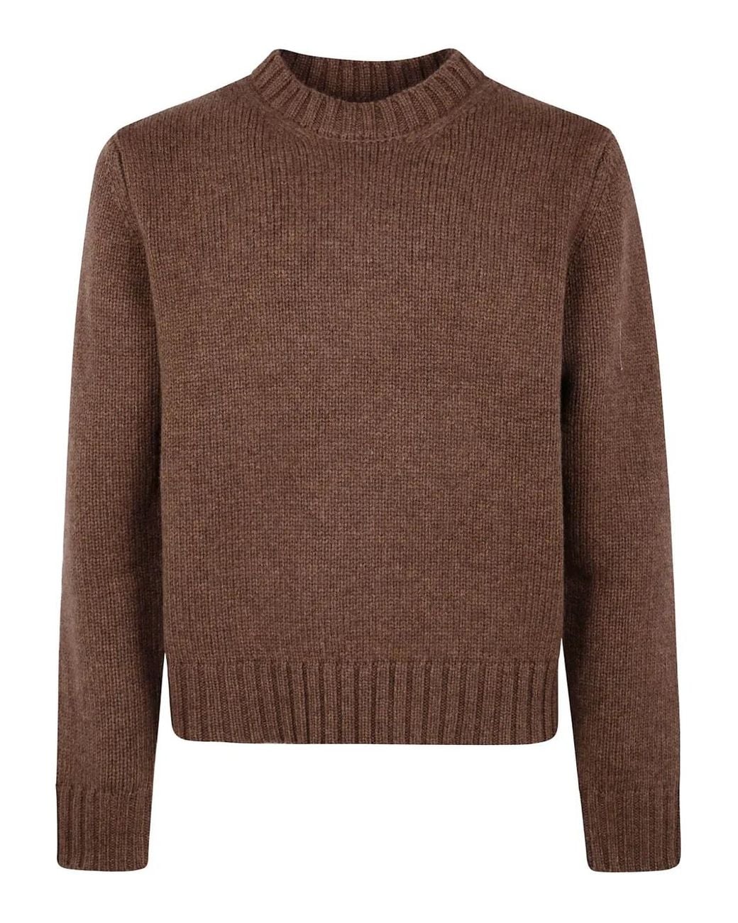 Caramel finitions côtelées col rond manches longues Size: S. Gender: Unisex. Material:laine de yak/mérinos. Coloris : marron