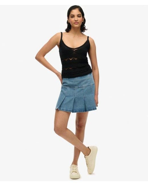 Femme Mini-Jupe Plissée À Empiècements Taille de coloris bleu
