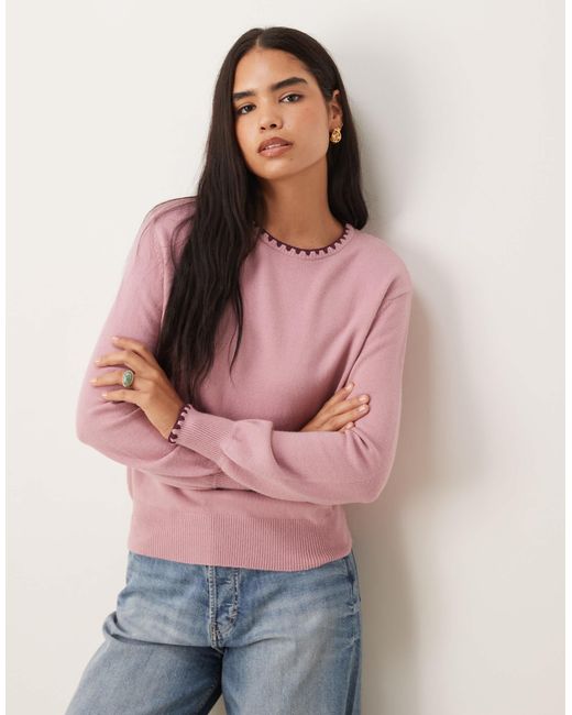 Pulls et gilets par Threadbare Col ras de cou Manches longues Encolure contrastante avec bords festonnés Bords légèrement festonnés au niveau des poignets Coupe classique. Coloris : rose