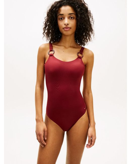 Maillot De Bain Dos Nu À Anneaux Écaille femme de coloris rouge