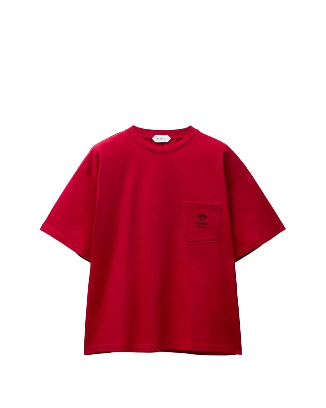 T-Shirt En Jersey Mélangé À Logo Brodé homme de coloris rouge