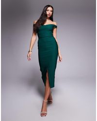 Vesper Robe mi-longue en bengaline à encolure bardot en cœur et fente sur le devant - baie femme de coloris rouge