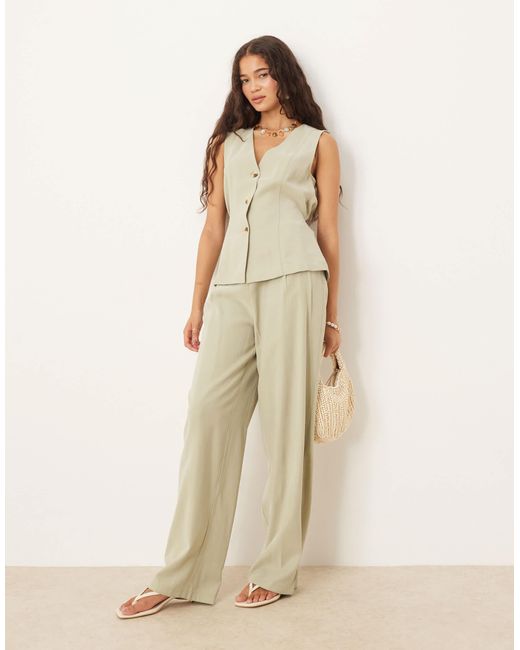Pantalon habillé d'ensemble à taille haute - sauge - Neutre