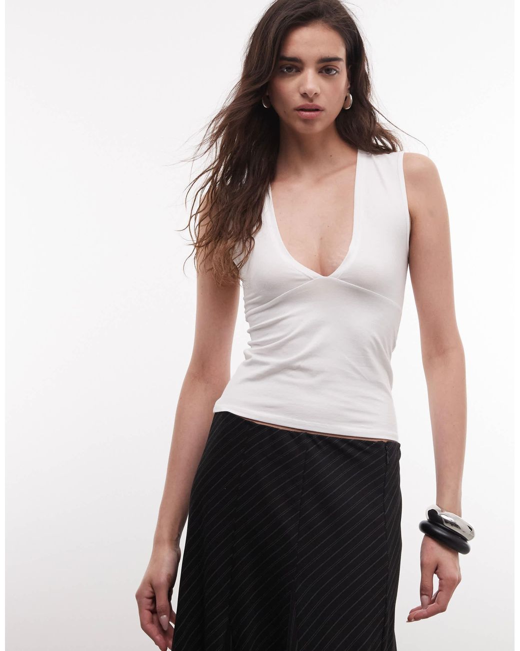 Top par Weekday Modèle uni Décolleté plongeant Coupe ajustée. Coloris : blanc