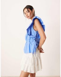 Y.A.S Top d'ensemble en broderie anglaise avec encolure nouée et détail volanté femme de coloris blanc