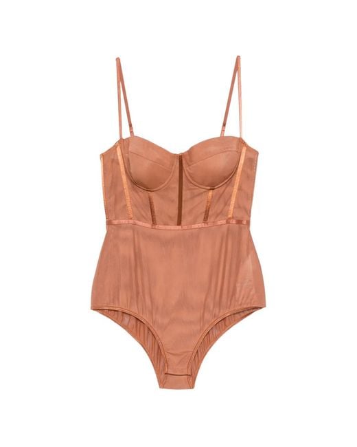 Body À Détail De Ruban Et Corset femme de coloris marron
