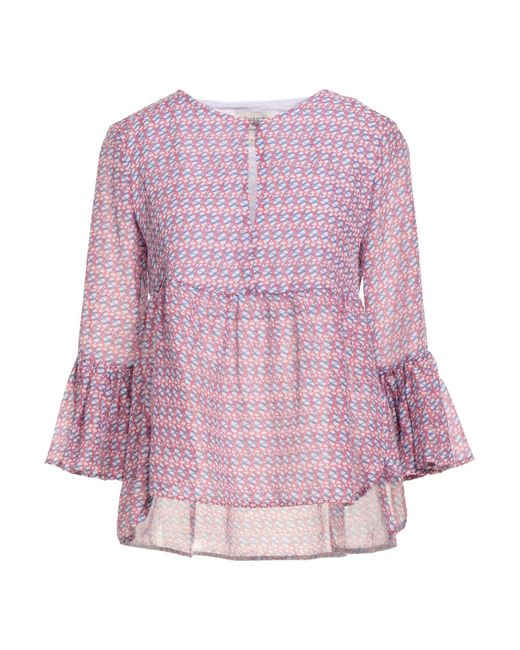 ALESSIA SANTI. top, tela, multicolore, intagli, collo con bottoni, maniche a 3/4, interno parzialmente foderato, lavare in lavatrice, non candeggiare, non asciugare in asciugatrice. 73% Cotone, 27% Seta. Colore: viola