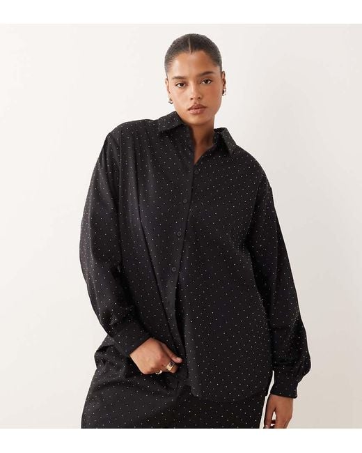 Top di ASOS Curve Decorazione applicata a caldo su tutta la superficie Colletto ampio Chiusura con bottoni Vestibilità oversize Colore: nero