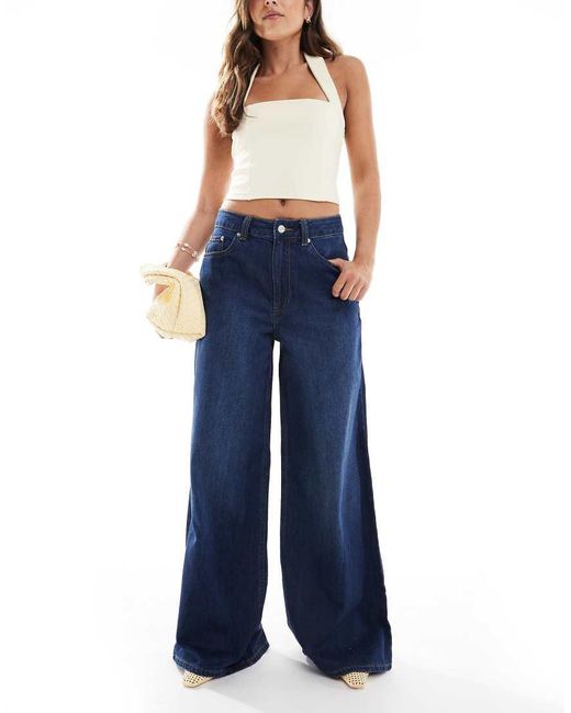 Jeans di ASOS DESIGN Fondo ampio Vita alta Passanti per la cintura Chiusura con patta Cinque tasche Colore: blu