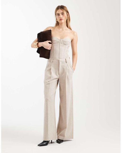 Pantaloni A Fondo Ampio Spazzolati Color Crema Con Motivo A Spina Di Pesce da donna di colore grigio