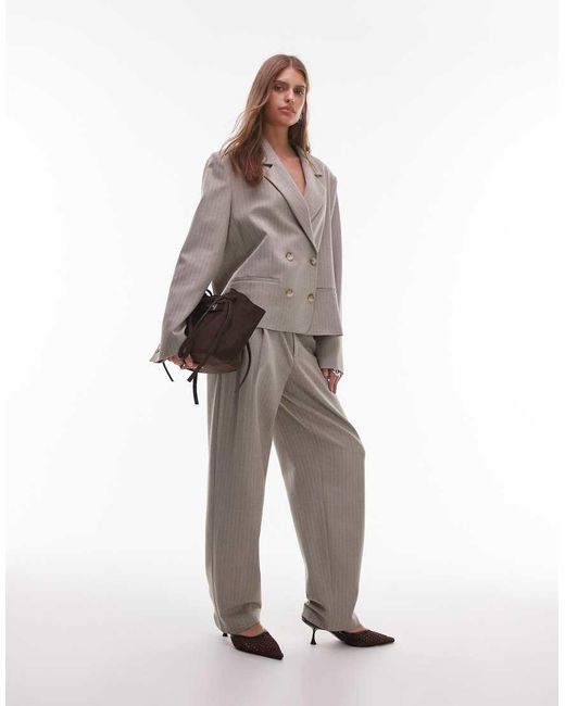 Blazer Corto A Spina Di Pesce Con Maniche Cocoon - Grigio