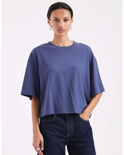 Top di ASOS DESIGN Girocollo Spalle scivolate Maniche corte Taglio corto Taglio squadrato Vestibilità comoda Colore: blu