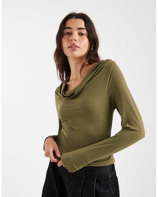 Top A Maniche Lunghe Kaki Con Scollo Ad Anello E Dettaglio Attorcigliato da donna di colore verde