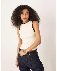 ASOS Top Senza Maniche Arricciato Con Impunture A Contrasto da donna di colore bianco