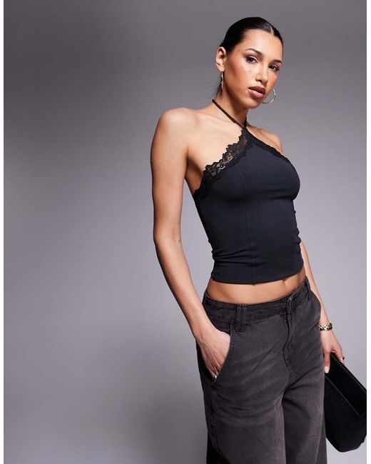 Top di ASOS DESIGN Modello allacciato al collo Bordo in pizzo Slim fit Colore: grigio