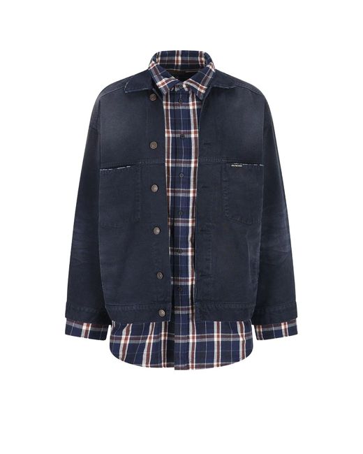 Canvas Jacket With Madras Inserts-Uomo di colore blu