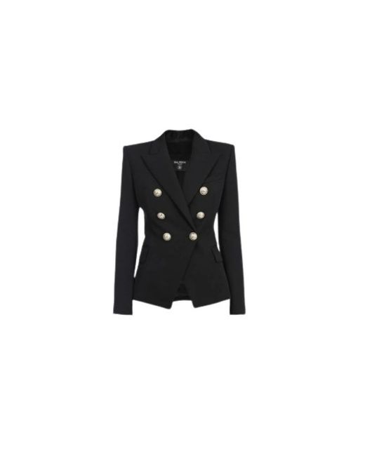 Blazer Balmain caratterizzato da dettagli con bottoni dorati a doppio petto per un look sartoriale classico. Caratteristiche principali: Nero | Chiusura con bottoni frontale | Parte anteriore a doppio petto | Bottoni color oro | Silhouette classica da blazer | Dimensioni e vestibilità: Vestibilità classica Colore: nero