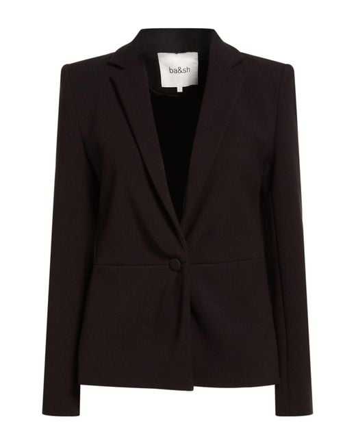 BA&SH. blazer monopetto, tela, tessuto elasticizzato, tinta unita, senza applicazioni, collo con revers, maniche lunghe, con spalline imbottite, interno foderato, lavare a secco, non candeggiare, non asciugare in asciugatrice. 67% Poliestere, 28% Viscosa, 5% Elastan. Colore: nero