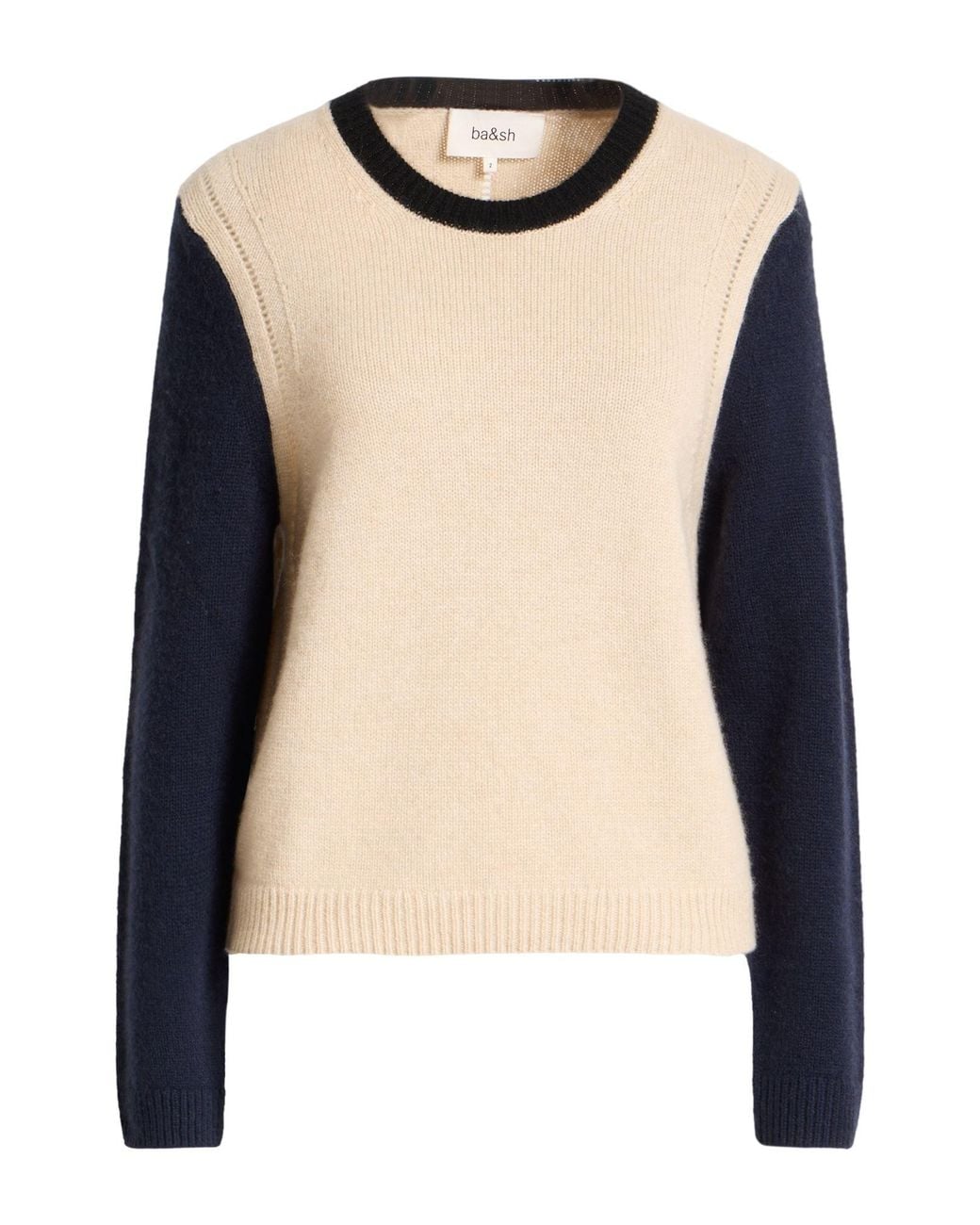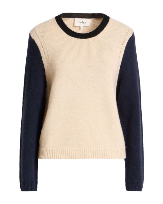 BA&SH. cachemire, maglia leggera, senza applicazioni, bicolore, collo tondo, maniche lunghe, lavare a mano o a secco, non candeggiare, non asciugare in asciugatrice. 100% Cachemire. Colore: blu