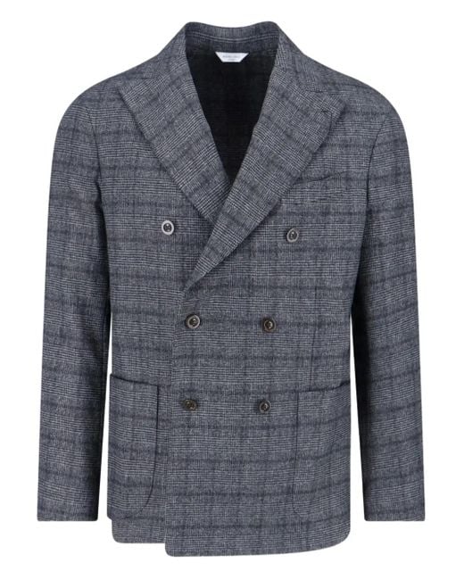Grigio motivo a quadri doppiopetto chiusura a bottoni tasche frontali applicate maniche lunghe Size: 46. Gender: Male. Material:lana/poliestere/elastam. Colore: blu