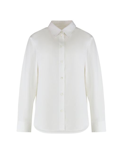 Camicia bianca a maniche lunghe, realizzata in cotone. Presenta un colletto classico e una chiusura frontale con bottoni. La vestibilità è comoda e adatta per diverse occasioni, dal lavoro al tempo libero. I polsini sono dotati di bottoni, aggiungendo un tocco di eleganza al design minimalista. Perfetta da abbinare a pantaloni eleganti o jeans per un look versatile. 100% Cotone. Colore: bianco