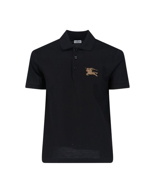 Polo "EDK" Burberry, in cotone nero, colletto classico, maniche corte, chiusura bottoni, ricamo logo "EDK" a contrasto fronte, olro dritto. Colore: nero