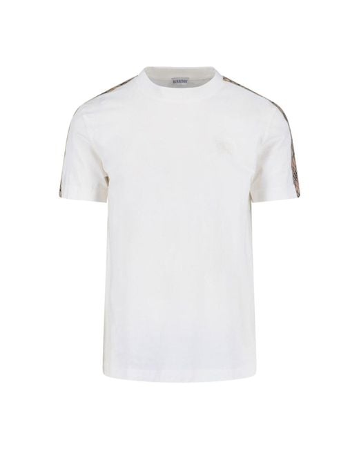 T-shirt girocollo "check" burberry, maniche corrte, dettaglio "check" spalle, orlo dritto. Colore: bianco