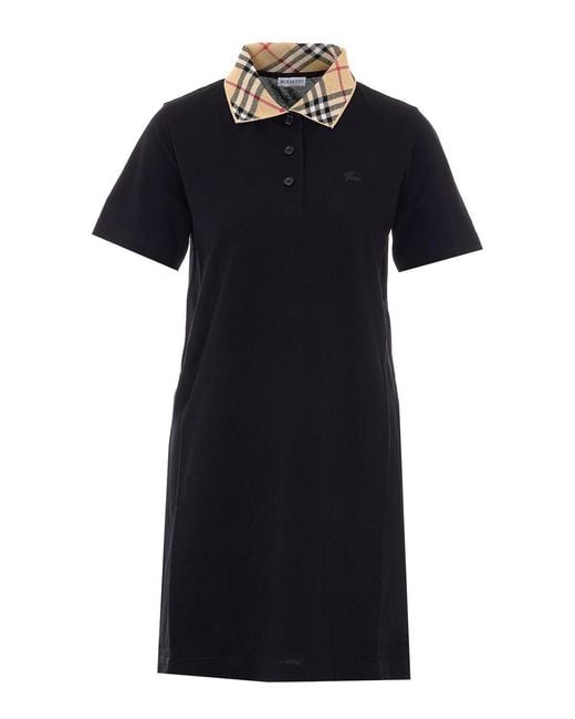 Vestito Burberry nero a quadri, colletto regolare con motivo check, maniche corte, logo ricamato sul davanti, chiusura con bottoni Colore: nero