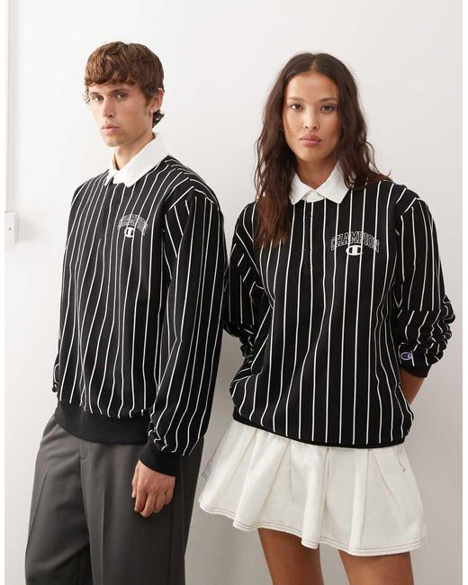 Top di Champion Colletto a punta Maniche lunghe Logo Champion sul torace e sulla manica Motivo a righe Finiture a coste Vestibilità comoda Modello unisex Colore: nero