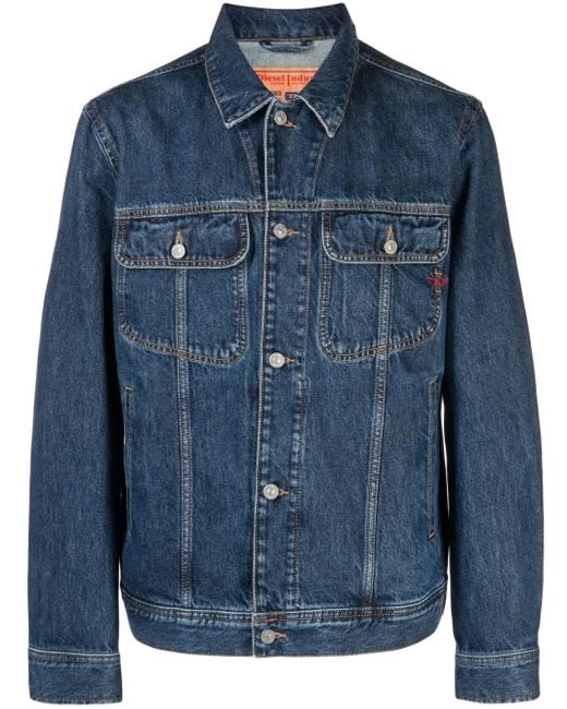 Indaco cotone denim design con cuciture verticali logo ricamato sul petto colletto classico chiusura frontale con bottoni maniche lunghe polsini con bottone due tasche sul petto con bottoni due tasche laterali a filetto orlo dritto Size: S. Gender: Male. Material:cotone.
