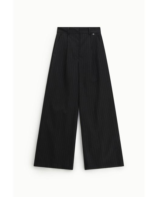 Rendi unico ogni giorno con questi pantaloni palazzo a righe sottili, dalla linea ampia e vita alta. Il taglio rilassato garantisce comfort e libertà di movimento, mentre le pratiche tasche laterali aggiungono funzionalità a uno stile originale che valorizza ogni look quotidiano. Colore: nero
