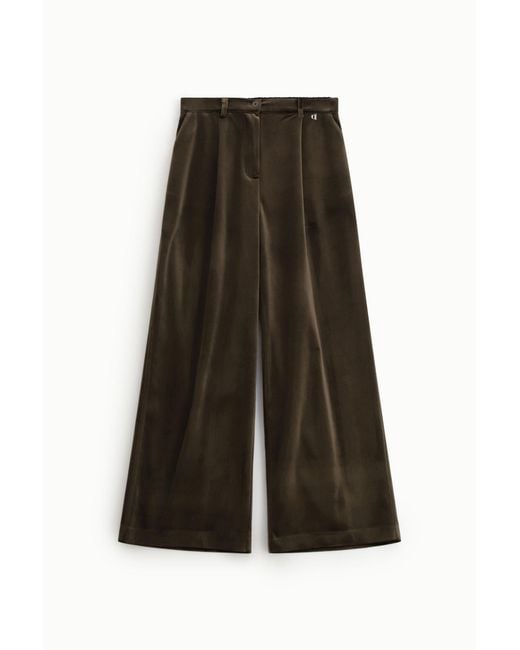 Sfoggia una silhouette fresca con questi pantaloni palazzo a vita alta e gamba ampia, completati da eleganti pince frontali. Le tasche laterali e la chiusura con bottone li rendono perfetti per accompagnarti in ogni tua giornata: ideali sia per un look curato in ufficio sia per rilassarsi con amici. Colore: blu