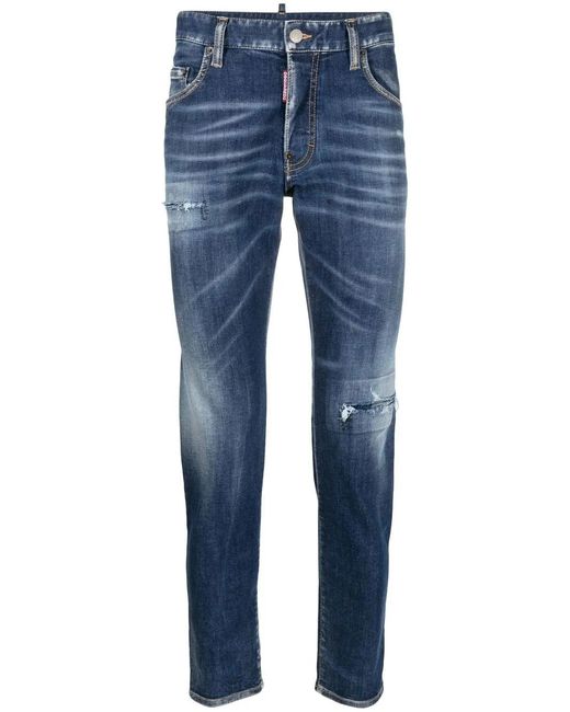 Jeans Skinny Icon Con Effetto Vissuto da uomo di colore blu