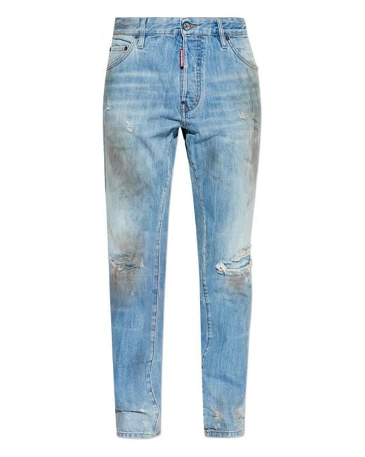 Azzurro dettagli con strappi effetto vissuto taglio dritto vestibilità regolare Size: 44. Gender: Male. Material:cotone. Colore: blu