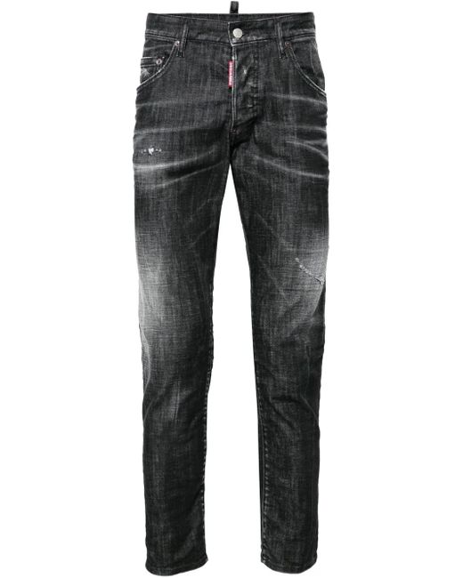 Nero cotone elasticizzato denim con effetto schiarito rifinitura con effetto vissuto applicazione posteriore con logo passanti abbottonatura frontale nascosta taglio slim design classico a cinque tasche Size: 42. Gender: Male. Material:poliestere/cotone/elastam/cotone/pelle di vitello.
