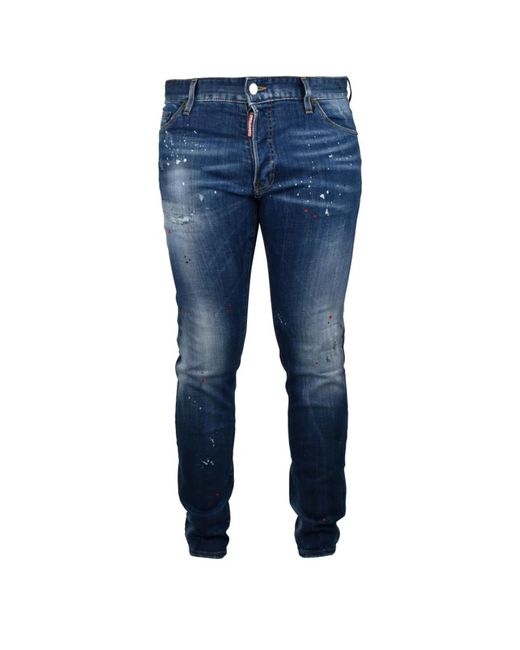 I jeans Cool Guy di Dsquared2 combinano denim di cotone elasticizzato con dettagli sbiaditi e strappati per un look grintoso e casual. Gli inconfondibili accenti di schizzi di vernice e i bordi con logo conferiscono un tocco finale d'effetto. Caratteristiche principali: Blu | Cotone | Tessuto elasticizzato | Tre tasche frontali | Due tasche posteriori | Chiusura con bottone | Effetto sbiadito | Effetto strappato | Effetto schizzi di vernice rossi e bianchi | Patch logo rosso sulla patta anteriore | Etichetta logo in pelle marrone sul retro | Dimensioni e vestibilità: Vestibilità skinny | Composizione e cura: 98% Cotone | 2% Elastan Colore: blu