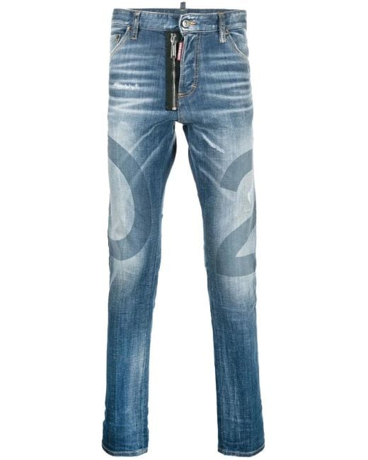 Blu, misto cotone, rifinitura con effetto vissuto, applicazione posteriore con logo, chiusura frontale con zip e taglio slim. Size: 48. Gender: Male. Material:elastam/cotone/cotone/poliestere/pelle di agnello.