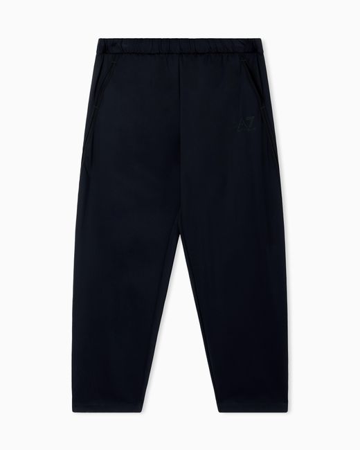 Pantaloni con vita elastica realizzati in tesuto tecnico. Un modello comodo e versatile, con tasche laterali e personalizzazione con logo EA7 sul finaco sinistro. Il design minimal li rende facili da abbinare a qualsiasi t-shirt o felpa. Un capo versatile e performante. Colore: blu
