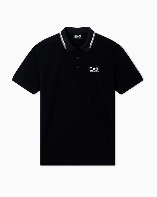 Polo provvista di collo a tre bottoni realizzata in morbido cotone stretch piquet che dona matericità al modello. Il capo si caratterizza per il dettaglio color block sul colletto e il logo EA7 a contrasto. Colore: nero