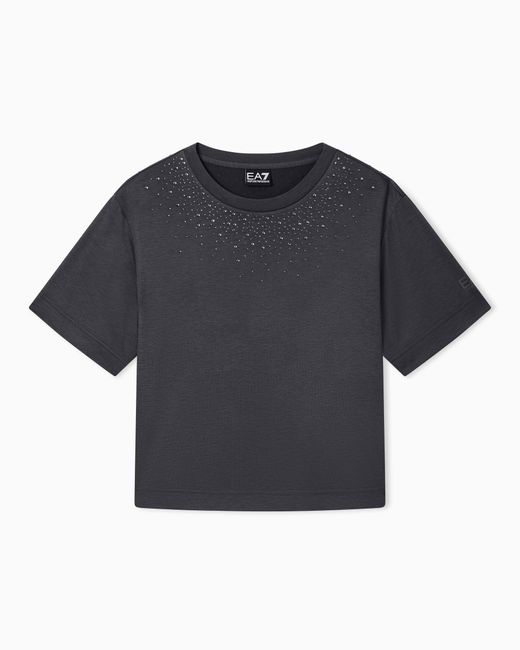 Stile confortevole e rilassato per questa t-shirt girocollo realizzata in misto viscosa. Il modello si distingue per i dettagli in strass che profilano il collo, donando al capo un tocco di luce al capo. Una proposta che appartiene alla linea Precious: una selezione di capi pensati per accompagnare momenti di relax con stile e comfort. Colore: blu