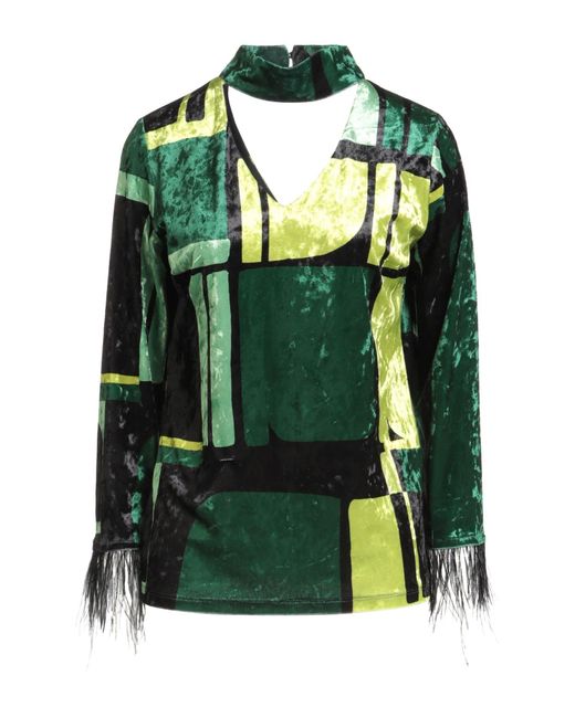 ÉCLÀ. top, ciniglia, tessuto elasticizzato, multicolore, piume, intagli, collo a lupetto, maniche lunghe, chiusura con bottoni, lavare a mano, non candeggiare, non asciugare in asciugatrice. 95% Poliestere, 5% Elastan. Colore: verde