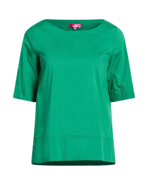 ÉCLÀ. top, tela, tessuto elasticizzato, tinta unita, senza applicazioni, collo ampio, maniche corte, lavare a mano o a secco, non candeggiare, non asciugare in asciugatrice. 70% Cotone, 26% Poliammide, 4% Elastan. Colore: verde