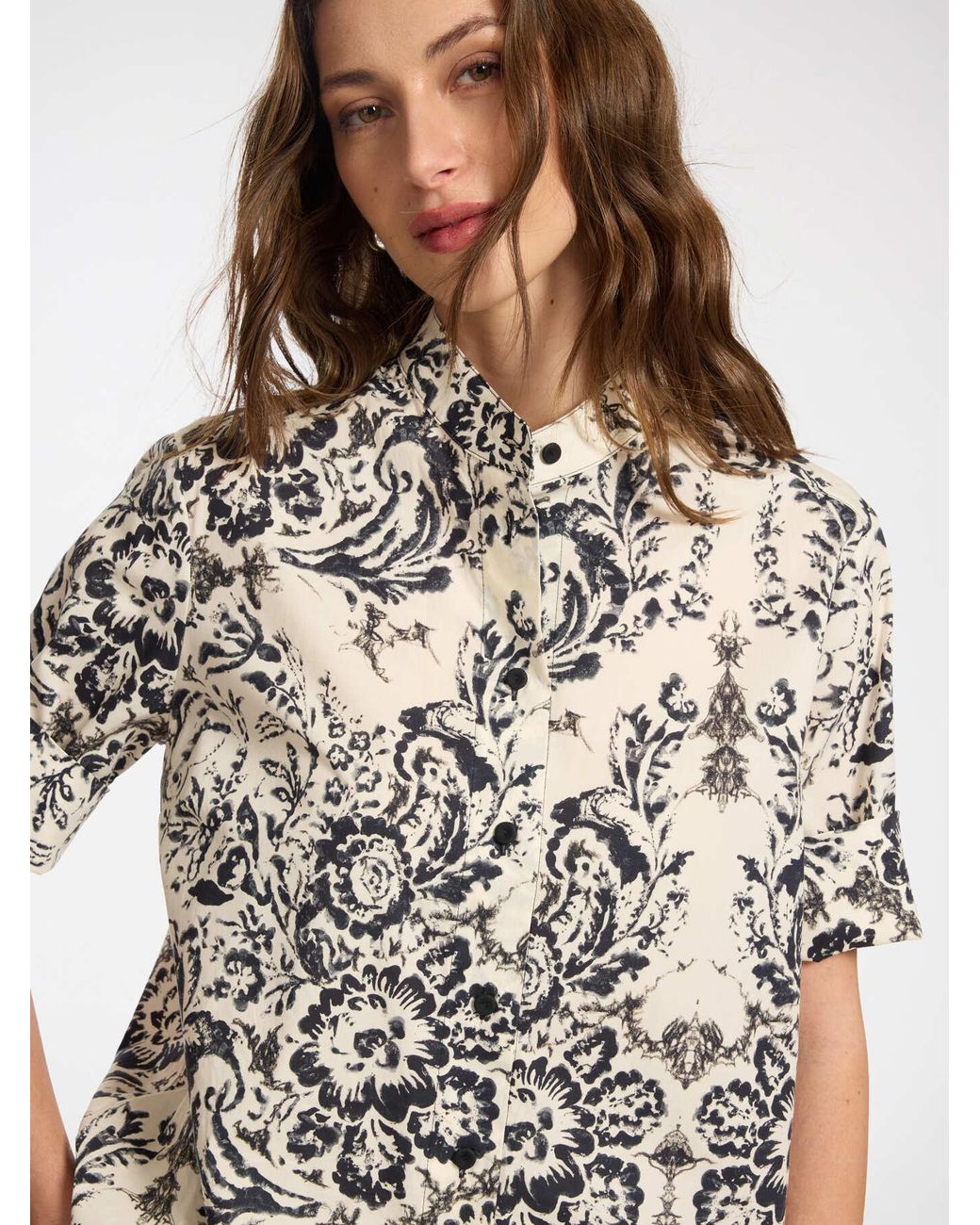 Camicia in popeline di misto cotone con stampa all-over e maniche corte. Si abbina a pantaloni sartoriali o jeans per ogni occasione. Camicia in popeline con stampa Vestibilità regular con chiusura a bottoni Maniche corte, colletto alla coreana. Colore: grigio